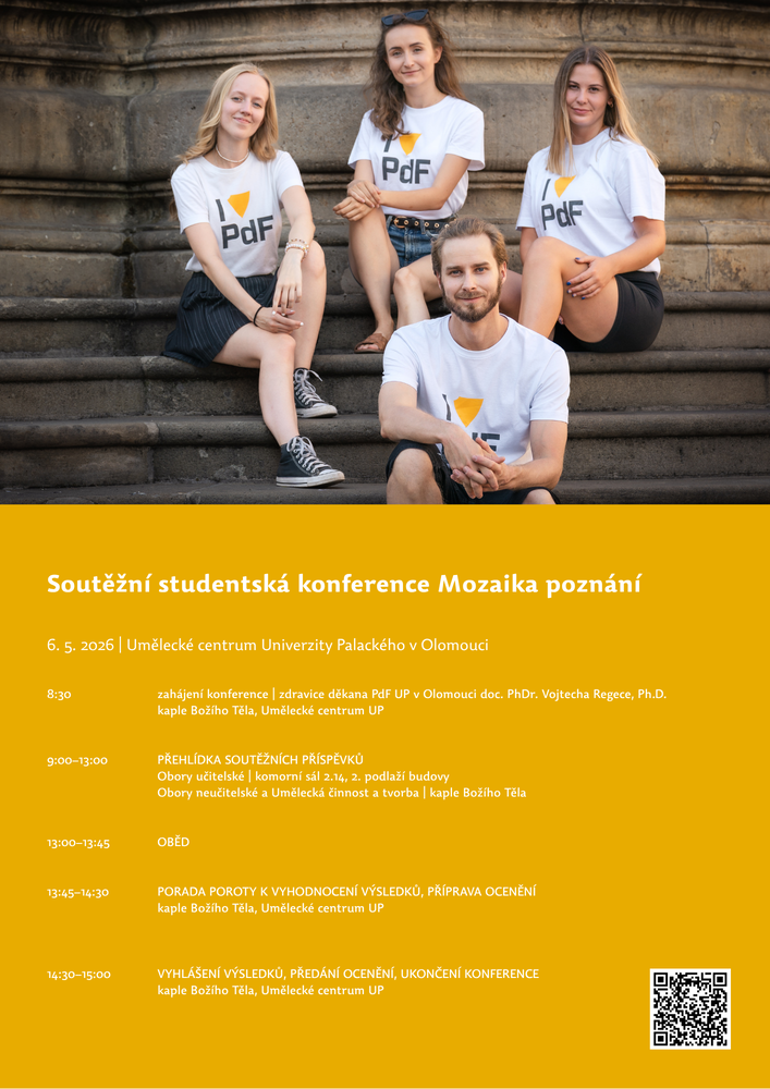 Konference Mozaika poznání je přehlídkou vědecko-výzkumné či tvůrčí umělecké činnosti všech studentů PdF UP a tematicky je rozdělena do těchto soutěžních sekcí: