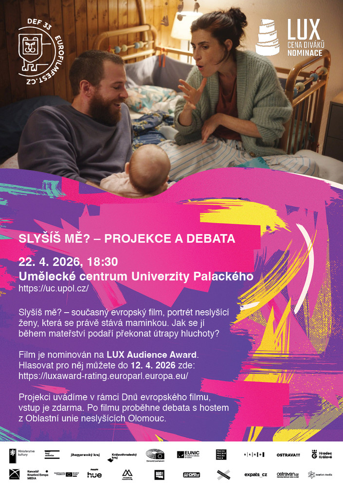 Po projekci proběhne beseda s odborníky z Unie neslyšících, díky které můžete nahlédnout do tichého světa lidí kolem nás. Možná o něm ani nevíte. A možná v něm sami žijete a přejete si, aby vás ten vnější svět občas lépe slyšel.