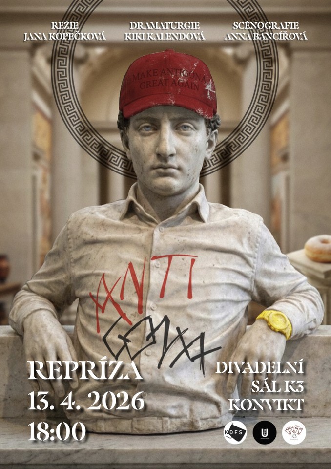 Inscenace Antigona studentského spolku UPrk přistupuje ke kanonické hře velmi nekanonickým způsobem, přičemž vyzdvihuje aktuální společenská i politická témata.